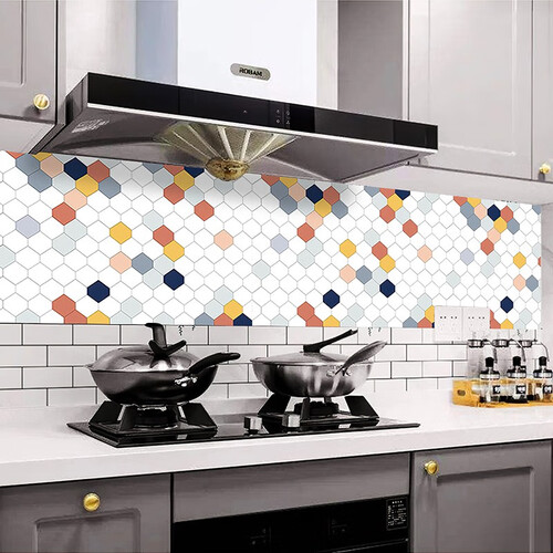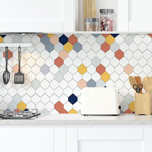此款贴纸选用几何撞色图案,时尚个性,展现独特的家居品位;用途多样,不仅可用于厨房防油,还可掩盖瑕疵墙面,利用率高。