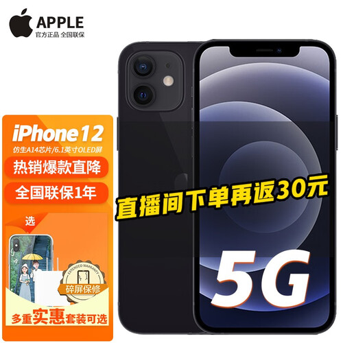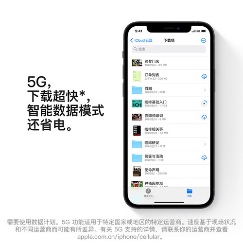 支持5G网络,在线看高清视频更流畅,玩在线游戏不断线。搭载A14仿生芯片,功耗更低,续航出色。