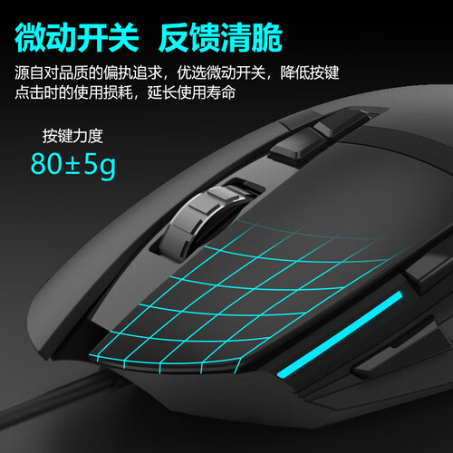 操控灵敏一触即发,提升游戏追踪速度,快速感知对手状态。侧面防滑设计,手部出汗不打滑,贴心设计具有人性化。