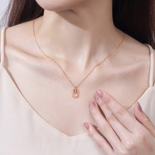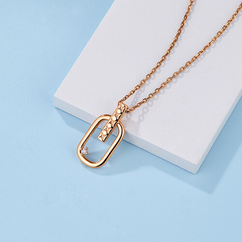 项链中间镶嵌着一颗钻石,佩戴在颈部很是吸睛亮眼。而且搭配服饰也非常好看,更能凸显都市女性的魅力。
