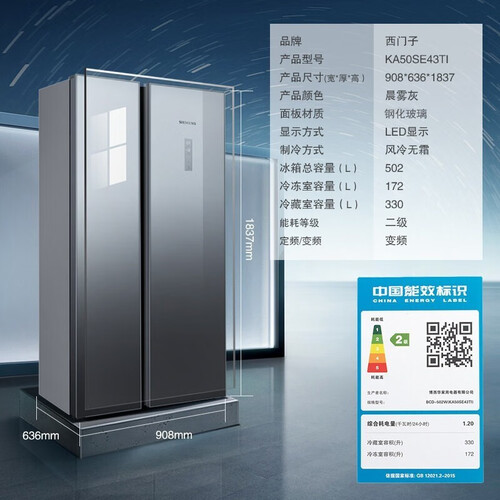 西门子对开门变频冰箱