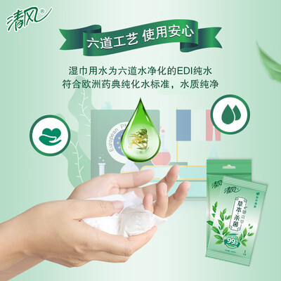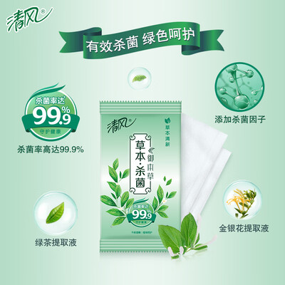 特含金银花、绿茶提取液,草本配方,绿色抑菌。配以高品质绵柔非织造布,细腻柔韧不伤肤。小巧独立的包装设计,出行便携卫生。