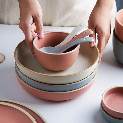 舍里哑光简约餐具,采用莫兰迪系列作为餐具4种颜色,欧式风格,哑光釉面质感突出,整体造型时尚美观,16头组合。