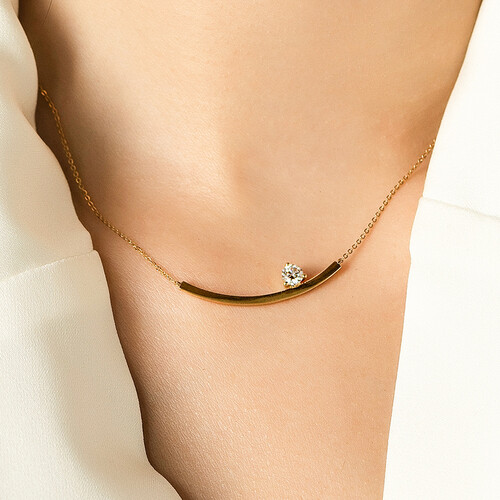 简约玫瑰金项链,形状仿若微笑嘴型,仿佛好运可以一直陪伴,让人心情大好。精致的做工,让项链看上去轻奢感满满,别有一番气质。