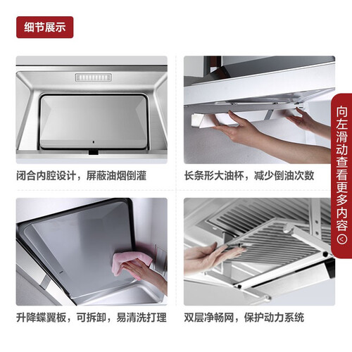 采用升降碟翼板,能够立方环吸油烟,不跑烟更健康。搭载自动巡航增压,排烟效果更显著。