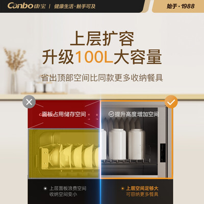 采用大容量设计,不但能容纳丰富的餐具,大层高也满足高脚杯直立放置,为您解决多种器具的消毒问题,更省心。