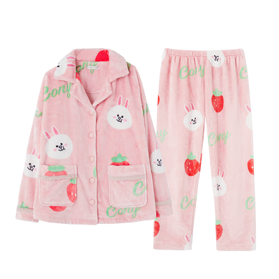 这款睡衣采用了长袖的外观设计,保暖舒适,防风御寒。衣身的可爱印花,看起来可爱温馨。