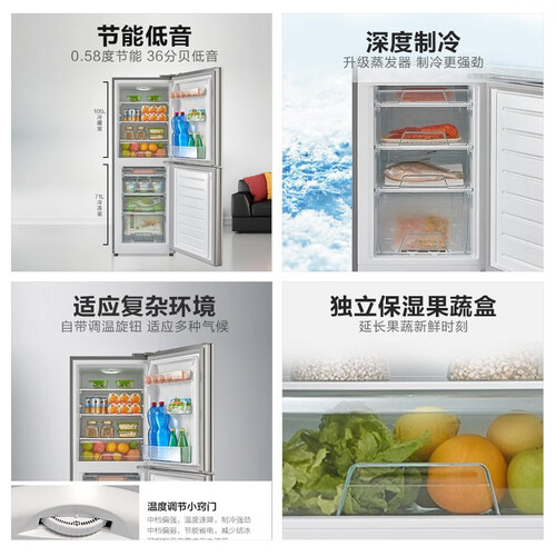 拥有自动低温补偿功能,能够让冰箱内的温度更加恒定,保鲜效果更出众。搭载芯节能科技,运行整整一天仅需0.58度电。