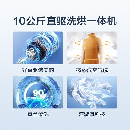 内置真丝柔洗模式,不拔丝衣物,呵护珍贵真丝衣物健康。搭载DD直驱变频电机,静音又节能,满足居家使用需求。