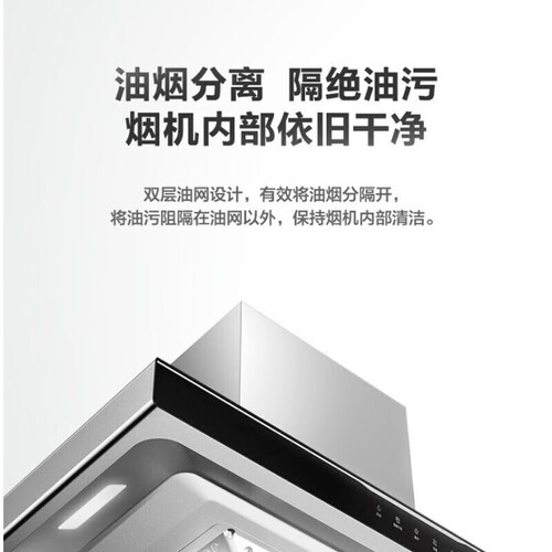采用智感干洗技术,自动清洗省时省力,成功解放你的双手。内置双层油网,轻松实现油烟分离,避免油污堵塞风道。