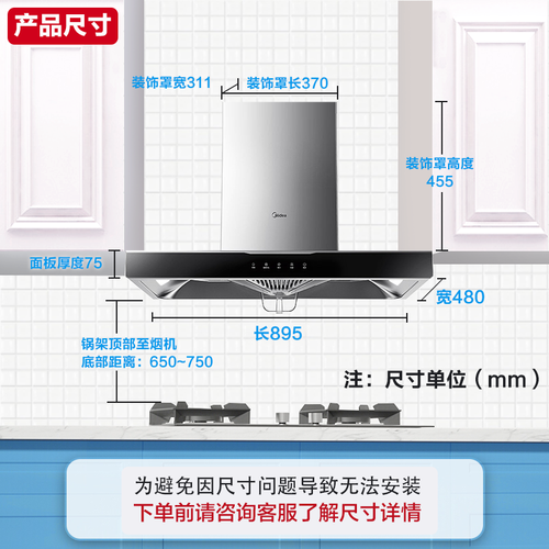 美的 宽幅拢烟油烟机