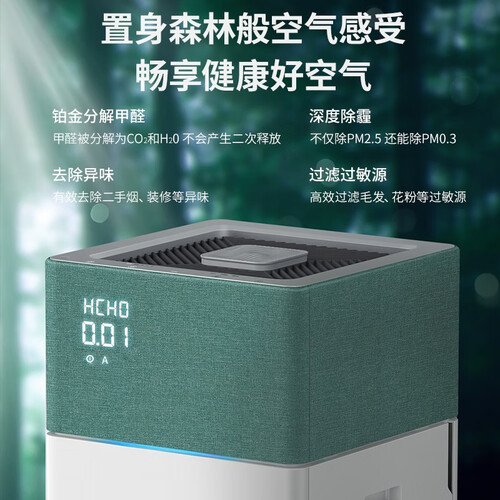 层层精细化过滤,不仅能滤除空气中的尘埃颗粒,还可以深层去除甲醛,呵护家人呼吸健康,甲醛数显技术,空气质量随时掌握。
