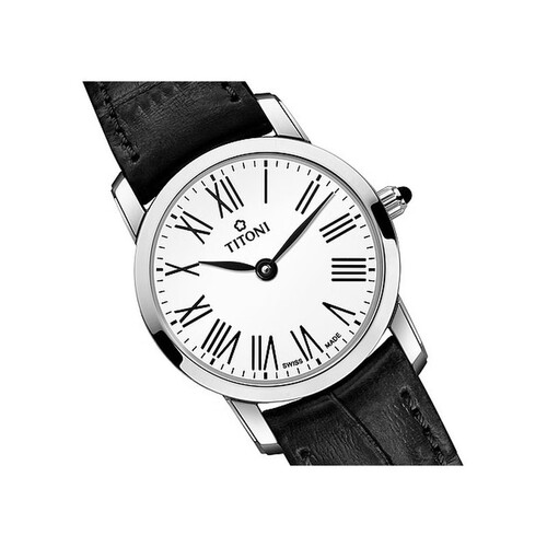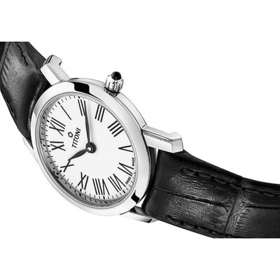 小巧的表冠采用经典图案点缀,彰显品质感。折叠式表扣设计,取戴方便快捷。经典黑白配色,时尚商务休闲等场合佩戴。