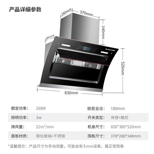 采用弧形面板设计,给予足够的烹饪空间。运行时噪音仅有70分贝,不用担心打扰家人,享受愉悦烹饪过程。