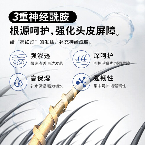 多元醇甘油产生自发热蒸汽,打开毛鳞片,加速补充养分,缓解毛躁受损发质。3重天然精油,让秀发会呼吸,柔顺丝滑。