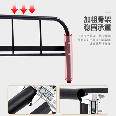 铁架床具有耐高温、防潮防锈,经久耐用。采用圆滑防撞边角设计,不易磕碰受伤。加粗骨架,承重度佳。搭配防滑脚垫,不易刮花地板。