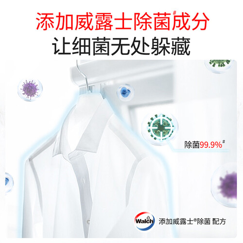 添加威露士杀菌成分加持,能够高效杀除细菌,让细菌无处可藏。融入爆香科技,令洗后的衣物持久散发香气,告别异味的困扰。
