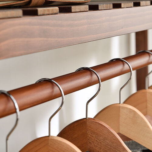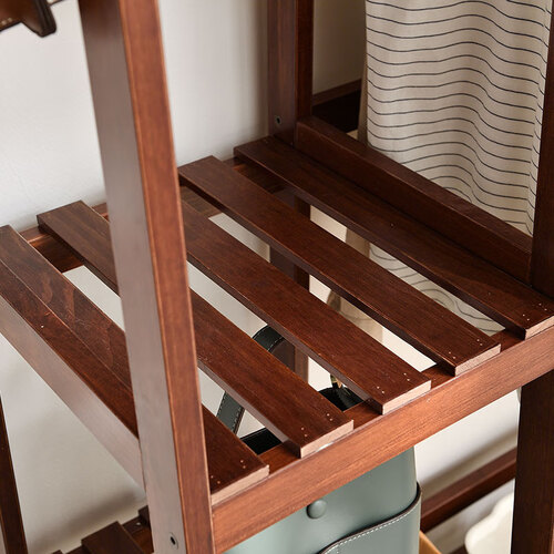 衣帽架选用实木材质塑造而成,原木色美观大方,支撑稳固不易倒。分区式收纳设计,增加了储物量,物品分类摆放更加整洁。