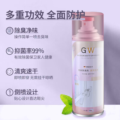 倒喷设计,气状喷雾可达纤维内层,远离脚臭瞬间干爽;一瓶多种用途,可去除鞋子异味、洗手池、马桶及橱柜异味。