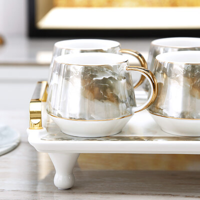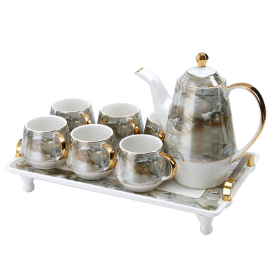 贴心的杯架配套,更方便茶杯收纳,不怕桌面会凌乱。茶杯与茶壶均带有金色提手,精致美观又实用,不怕开水烫手。