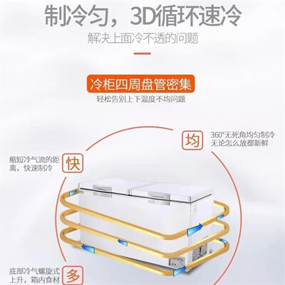 卧式机身设计,开柜快捷方便,操作一目了然,使用更顺手。拥有大冷冻力设计,制冷更快,温度稳定,有效保持食物口感。