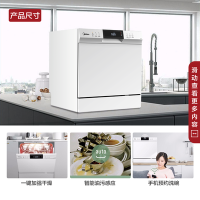 8套大容量的洗碗机,能一次洗碗洗锅。还能清洗水果蔬菜,解放双手,可以高质量的享受生活。带有软水处理,餐具不留水垢。