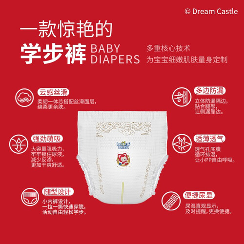 透气孔底膜设计,具有循环排湿气性,让小屁屁更舒畅。采用柔韧一体芯体搭配丝滑面层,亲肤舒适,有效减少摩擦感。