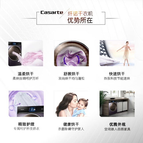 升级烘干技术,通过内部热量传递,进行快速烘干,无需久等就能穿上舒适衣物。大容量设计,自由舒展,减少衣物间的摩擦。