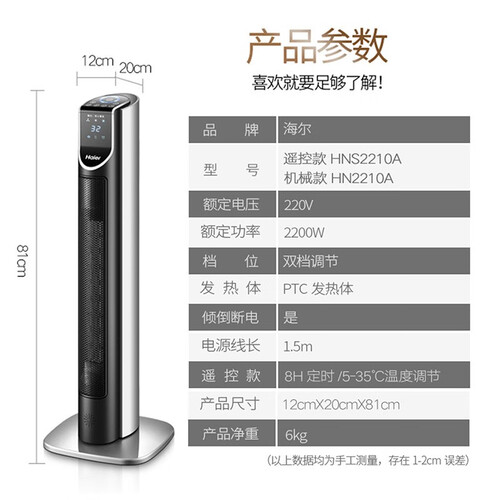 精选PTC陶瓷发热体,具有较好的制热效率,能快速散热,室内温度上升快,速享温暖。稳若磐石大底盘的设计,摆放稳固,防推到。