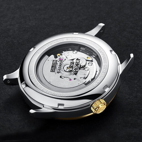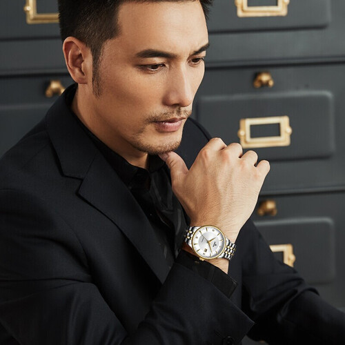表身甄选316L实心精钢打造,无惧磕碰,长久佩戴不变样。内置进口自动机械机芯,稳定运行,助你能准时赴约。
