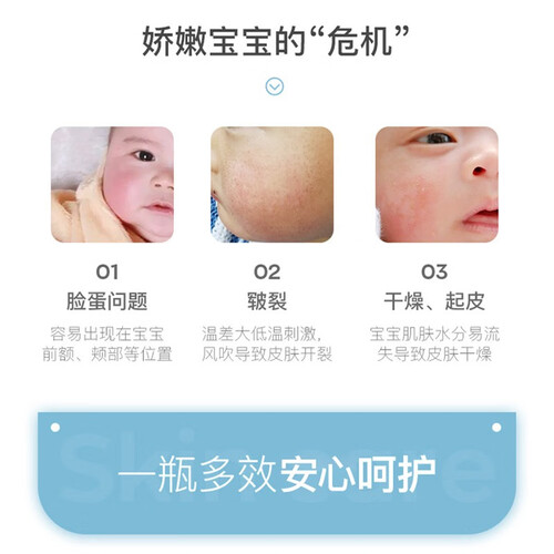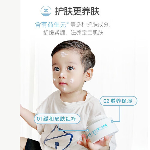 内含神经酰胺成分,为宝宝的肌肤注入水分,更能保湿锁水,缓解干燥;精选益生元配方,修护肌肤的受损屏障,增强肌肤的抵抗力。