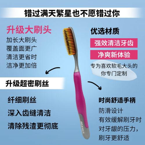 纤细的刷毛除清洁牙面外,更能深入到牙缝之中进行清洁,使牙齿里外皆干净。手柄流线简约方便握持,特别是防滑设计更显贴心。