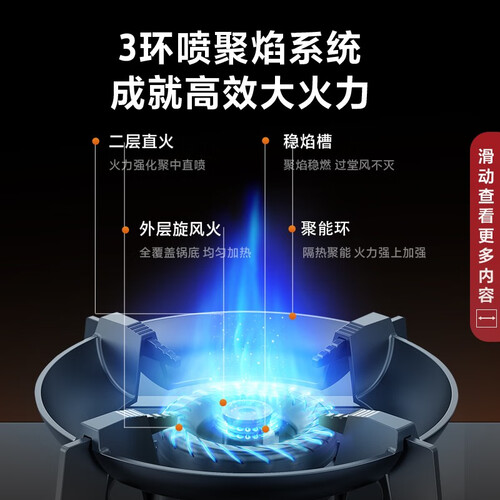 5.0KW聚焰猛火,专为中式爆炒量身定制。X型防滑锅架,避免打滑而影响使用安全。熄火保护使用安全,有效防止意外滋生。