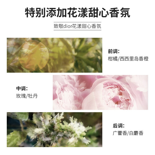 以蜂王浆为主要成分,颗颗爆珠,让维生素轻松消除干燥,渗透养分。添加DIOR花漾甜心香氛,产生温柔优雅的香气。