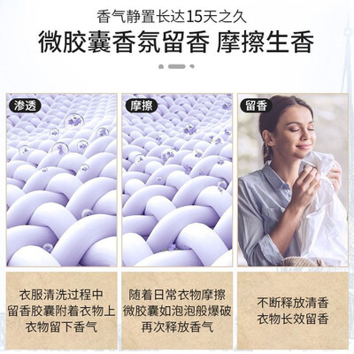 采用微囊香氛缓释科技,衣物与身体的每一次摩擦,都在不断释放香味,持续留香长达7天;配方不含磷,无荧光剂,洗后无碱性残留。