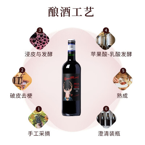 选用梅洛葡萄品种酿制,其酒体呈诱人的深紫红色,而且还散发着水果香气,细品后入口柔顺,回甘滋润,充满水果的清甜之感。