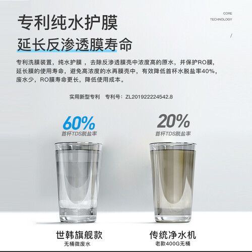 内置洗膜装置,纯水护膜,有效延长RO膜使用寿命,降低使用成本。三级四层净化,滤除杂质,呵护全家人饮水健康。