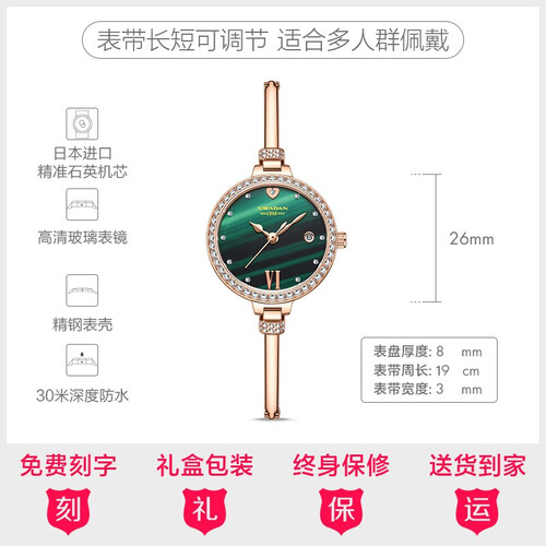 西卡丹 孔雀绿森系女士石英手表