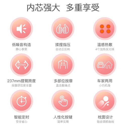 采用弧形设计,遵循人体工学,实现颈部与按摩枕自然贴合,睡前热敷按摩15分钟,颈部轻松一整天。精选网眼布面,透气性强。