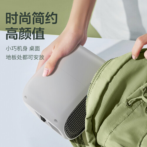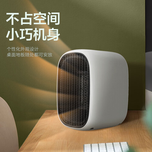 可随包携带的高颜值取暖器,巴掌大小的机身灵活摆放在各个角落取暖,随时温暖身体。内置陶瓷发热体,开机五秒即可带来绵绵暖风。