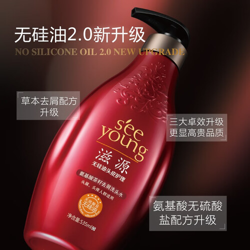 采用无硅油配方,可避免使用后的油腻感受。搭配植物精粹成分,深层滋养毛囊,源源不断输入营养,令秀发柔顺有光泽。