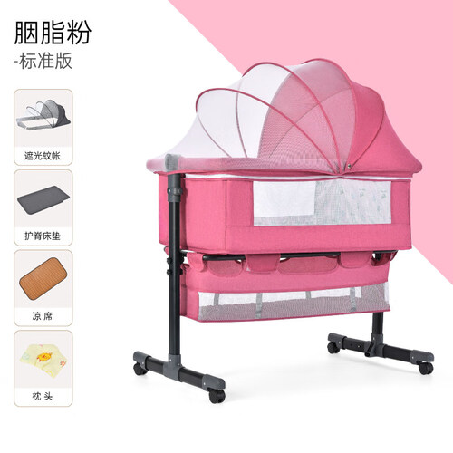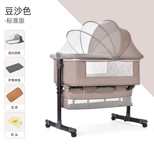 遮光蚊帐,防强光和蚊虫滋扰;可变摇床,呵护宝宝安心入睡;倾躺模式,可抬高一头,喂奶后防溢奶。