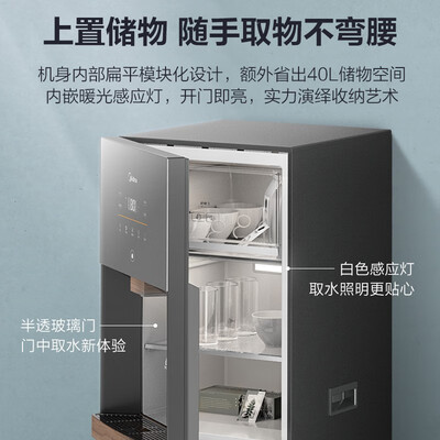 创新采用上置式储物设计,嵌入暖光感应灯,实现整洁美观的收纳体验。纯净安全的灭菌功能,隔离有害物质,确保饮用水新鲜健康。