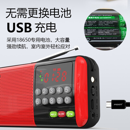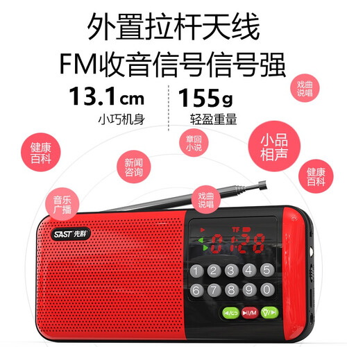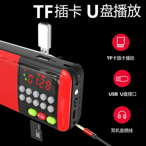 大功率全频喇叭,按键大,音质好。集mp3、手电筒和时钟于一体,可串手绳,出门戴手上不易掉。