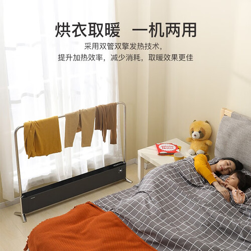 采用方形铝片发热体设计,与空气形成对流,循环供热,舒适安逸。搭配可拆卸烘衣架,温暖衣物,穿着更舒适。