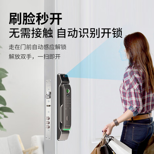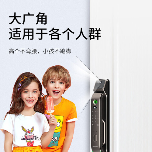 精选全景广角高清摄像头,不用开门也能清晰查看门外状况。内置智能芯片,自动提醒和交代门锁状态,不论离家远近都放心。