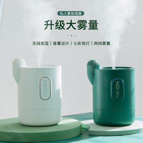 以清新仙人掌为设计灵感,充满清新气质,摆在家中更治愈。内置2000mAh电池,续航长达10小时,随时都能滋润肌肤。