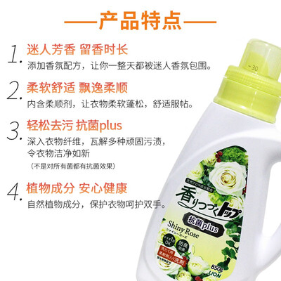 此款洗衣液添加香氛配方,气味芳香,留香时间长,穿衣更舒心;并添加柔顺剂,使衣物更蓬松,穿着舒适。