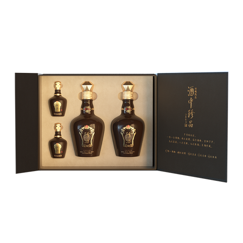 采用了方正的礼盒包装,对开式的开启方式增添大气感,适合用于礼赠。双瓶美酒加酒具,精美实用。