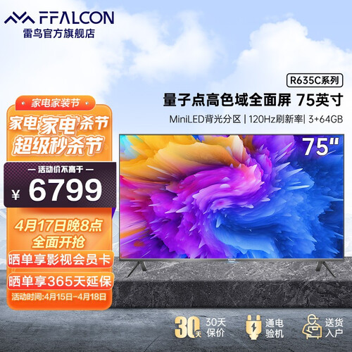 搭载QLED量子点技术,提升画面色域值,为你还原细腻逼真的画质。屏幕刷新率高达120Hz,易于捕捉细微动作。